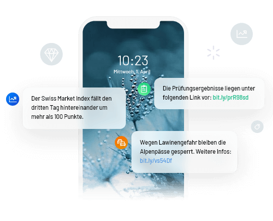 Mobile channels can be used for a variety of information purposes. Whether at work or in your free time, automated short messages like SMS are the perfect means of communication to keep customers, employees and partners up-to-date with the latest info.